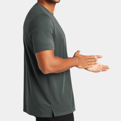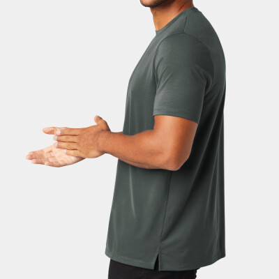 The building block to the contemporary wardrobe, this refined t-shirt is a vehicle for style and expression. Equal parts soft and stretchy, the moisture-wicking fabric offers a gentle drape. Self-fabric crew neck, self-turned cuffs lay smooth on the arm, while the self-turned hem's side vents pull off the untucked look.