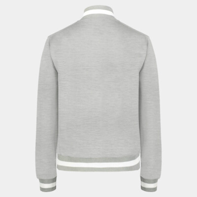 - Striped ribbed-knit cuffs and bottom hem